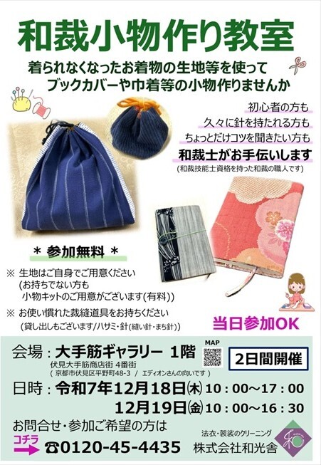 1F和光舎 和装小物作り教室.展示作品販売